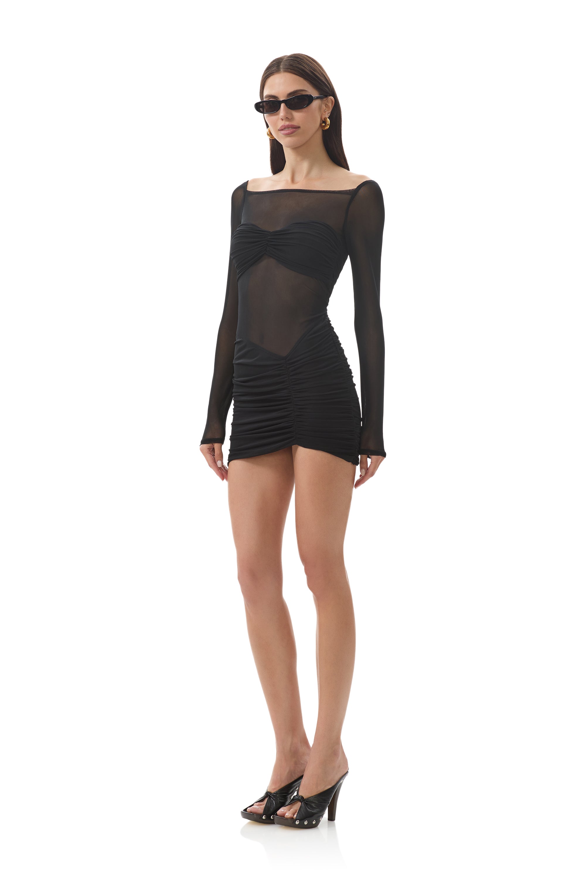 Meet the all new Ramsey mini dress. This body-hugging silhouette is designed with a sheer waist adds that adds touch of elegance and breathability, perfect for warm, sunny days. With a ruched lined bandeau for added structure and a flattering fit, this dress exudes both confidence and comfort.