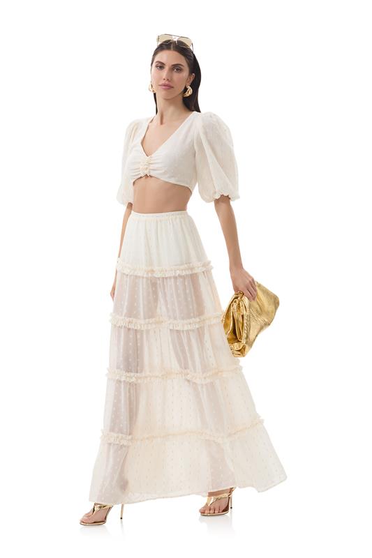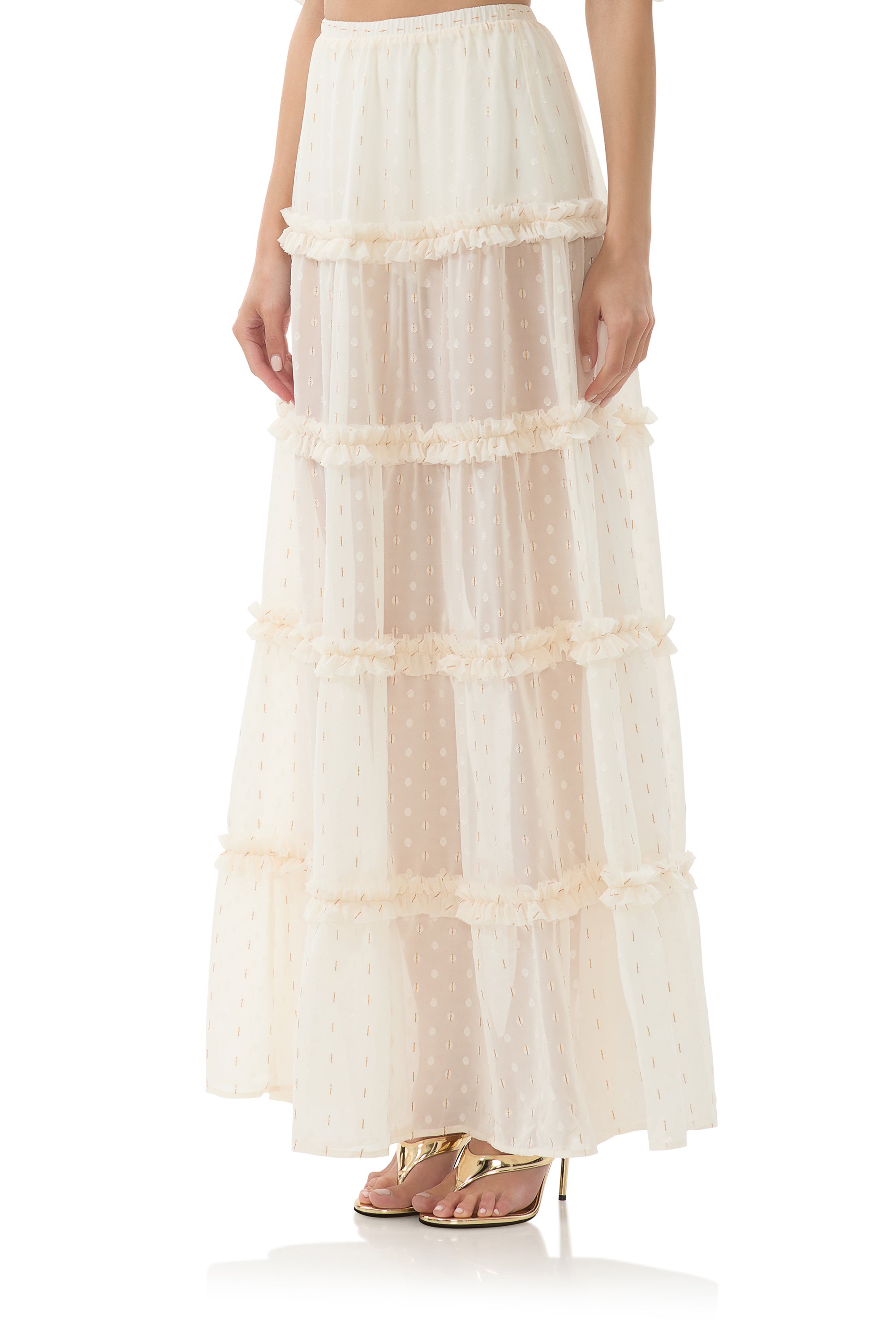 The perfect skirt to show just the right amount of skin, dive into our latest creation, the Sabina Skirt. This romantic semi sheer maxi skirt is meant to be paired as a set with our Emily Top.