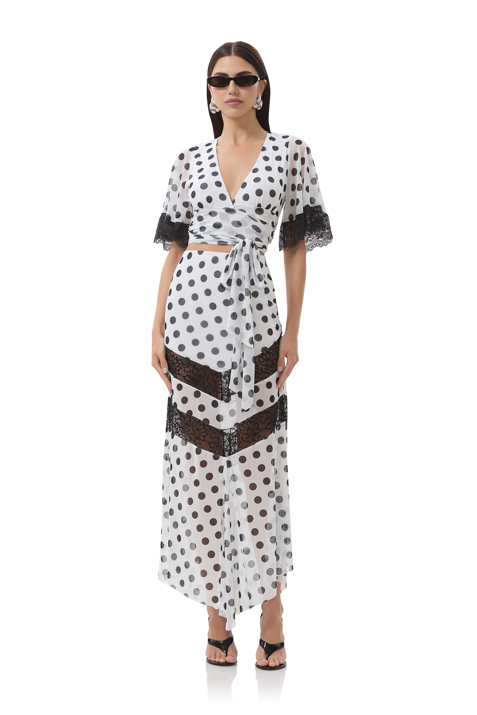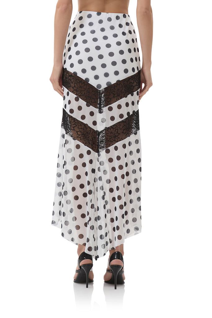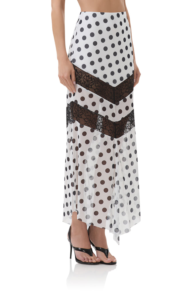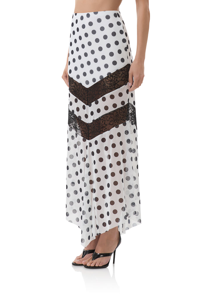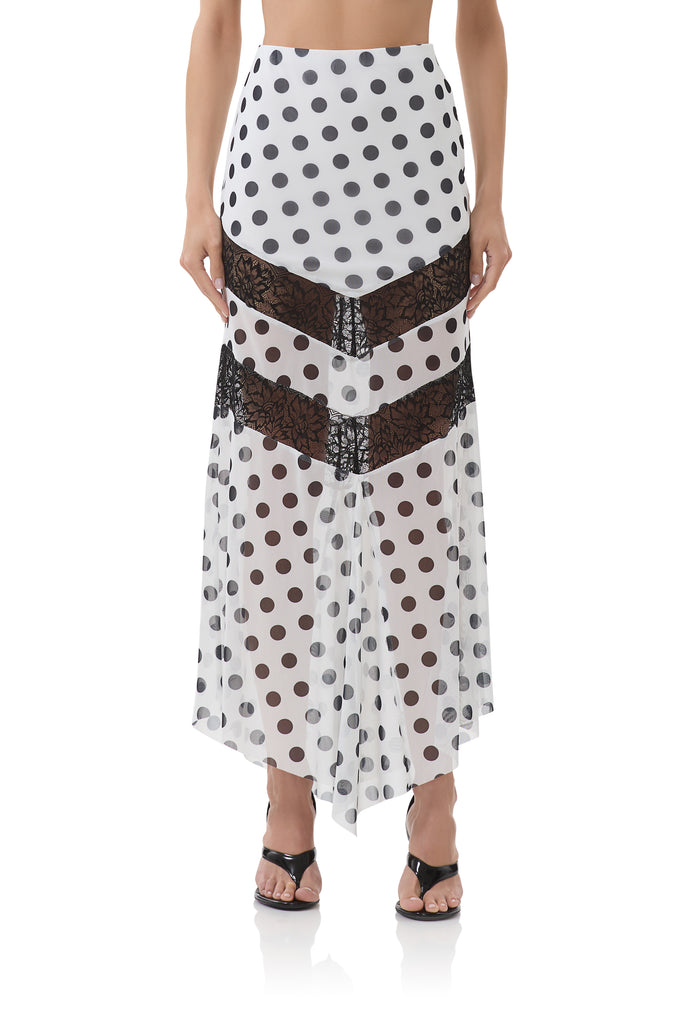 Say hello to Chelsea, a romantic take on the classic mermaid maxi skirt. With a flattering fitted waist, sheer lace panels, and a flowy mermaid-style hem, she moves with effortless grace. For a perfectly styled set, pair it with our romantic Arlington Top.
