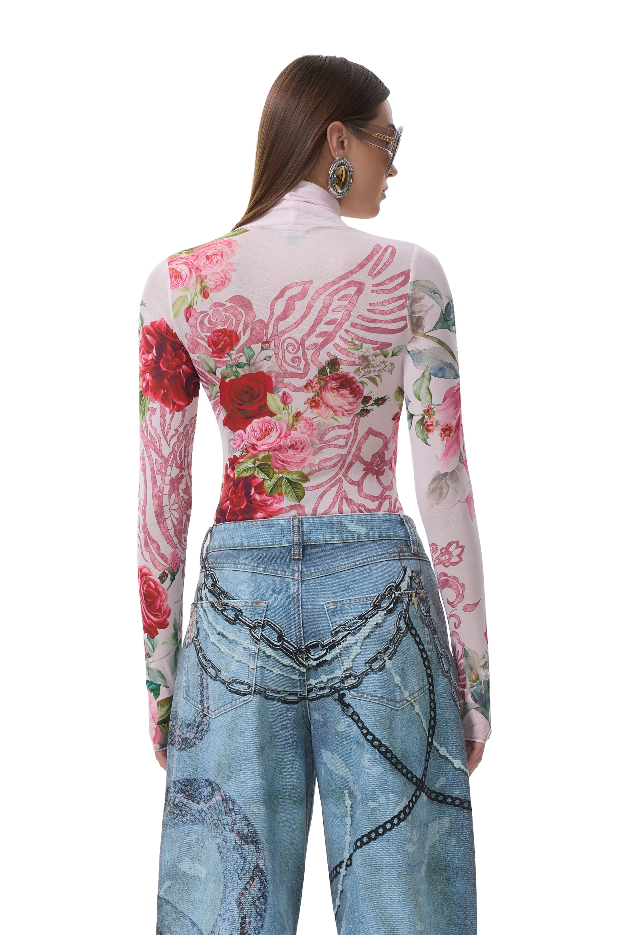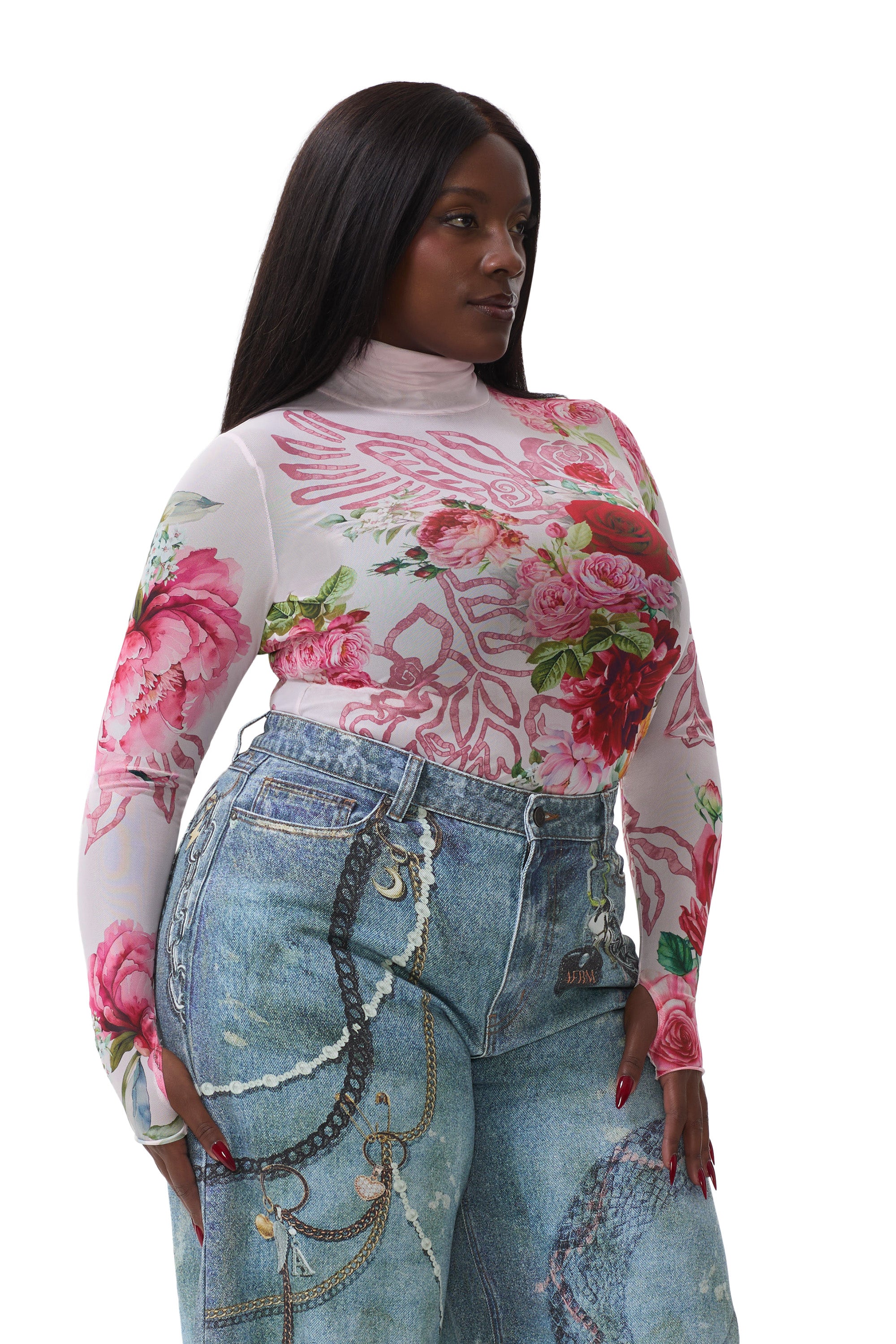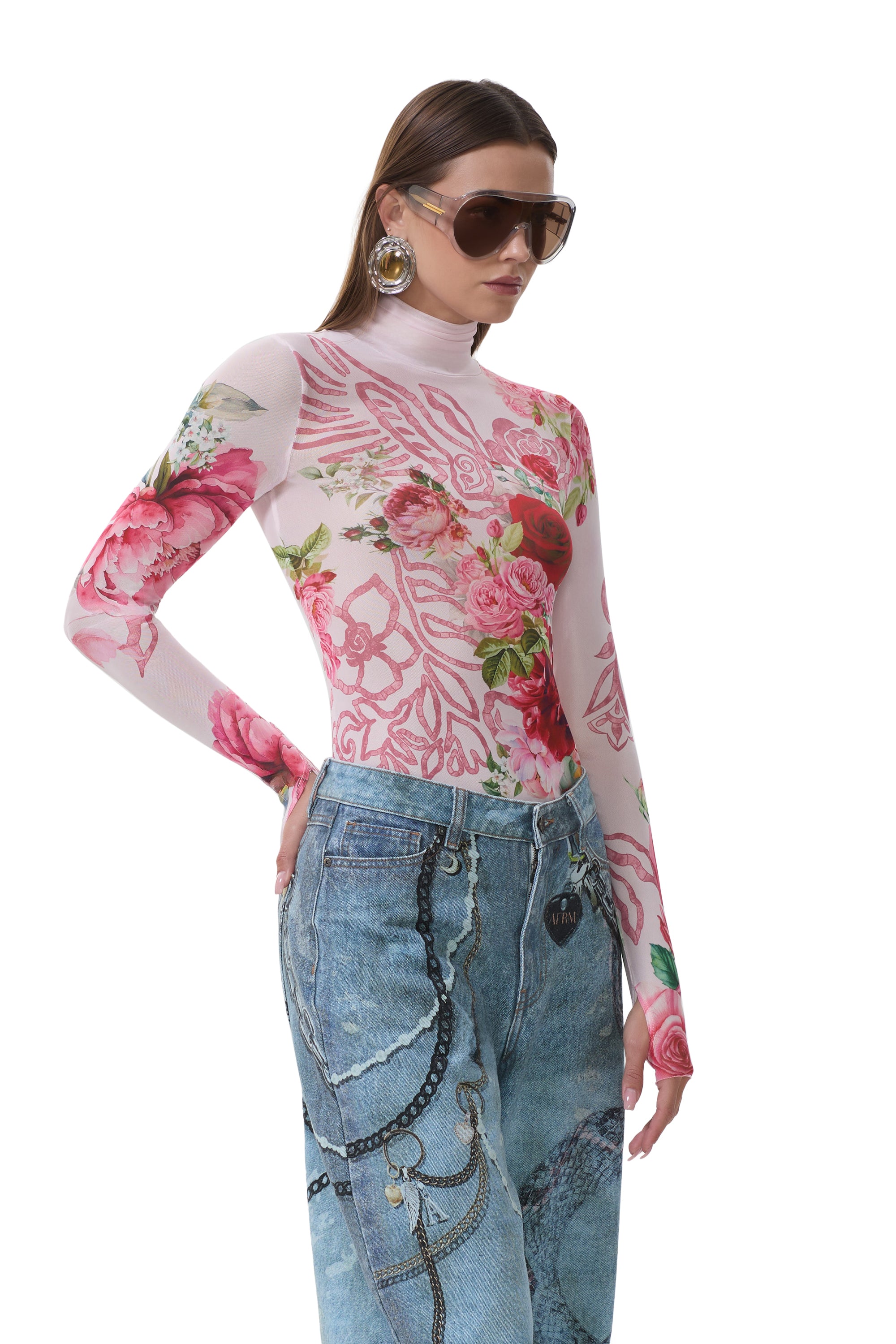 The Zadie top features a sheer mesh material and street-style thumbholes that lend an edgy update to off-duty style. She comes in Wing Rose.