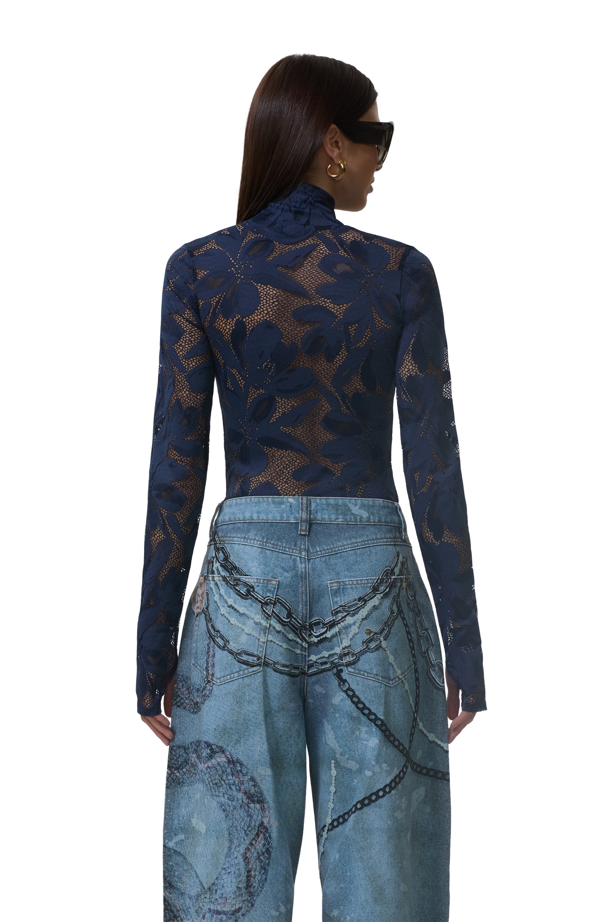 Stay bold throughout the season in the best selling Zadie Top, now designed in our newest crochet floral lace fabrication. Detailed with a classic turtleneck, and edgy thumbhole sleeves, she’s the perfect blend of glam and street style. Available in Black Iris.