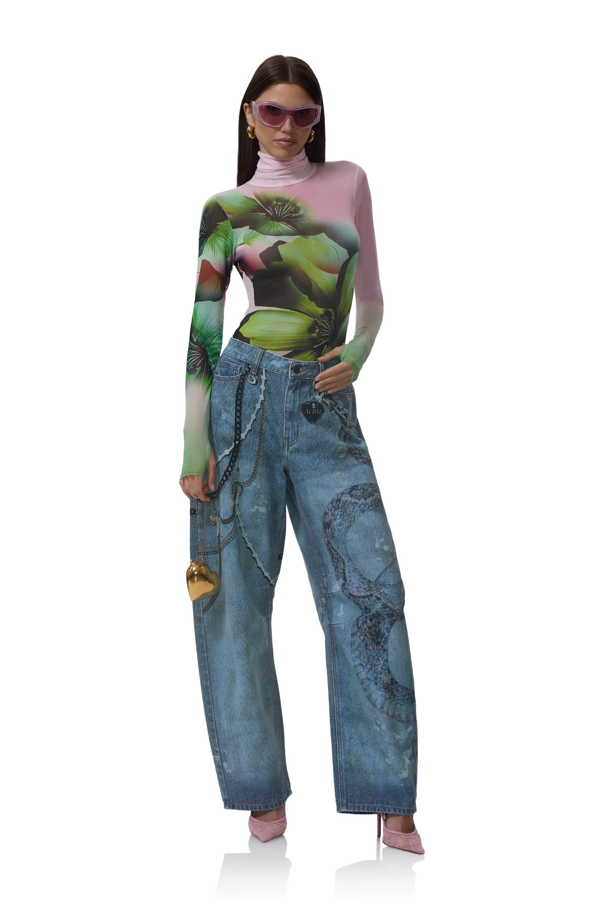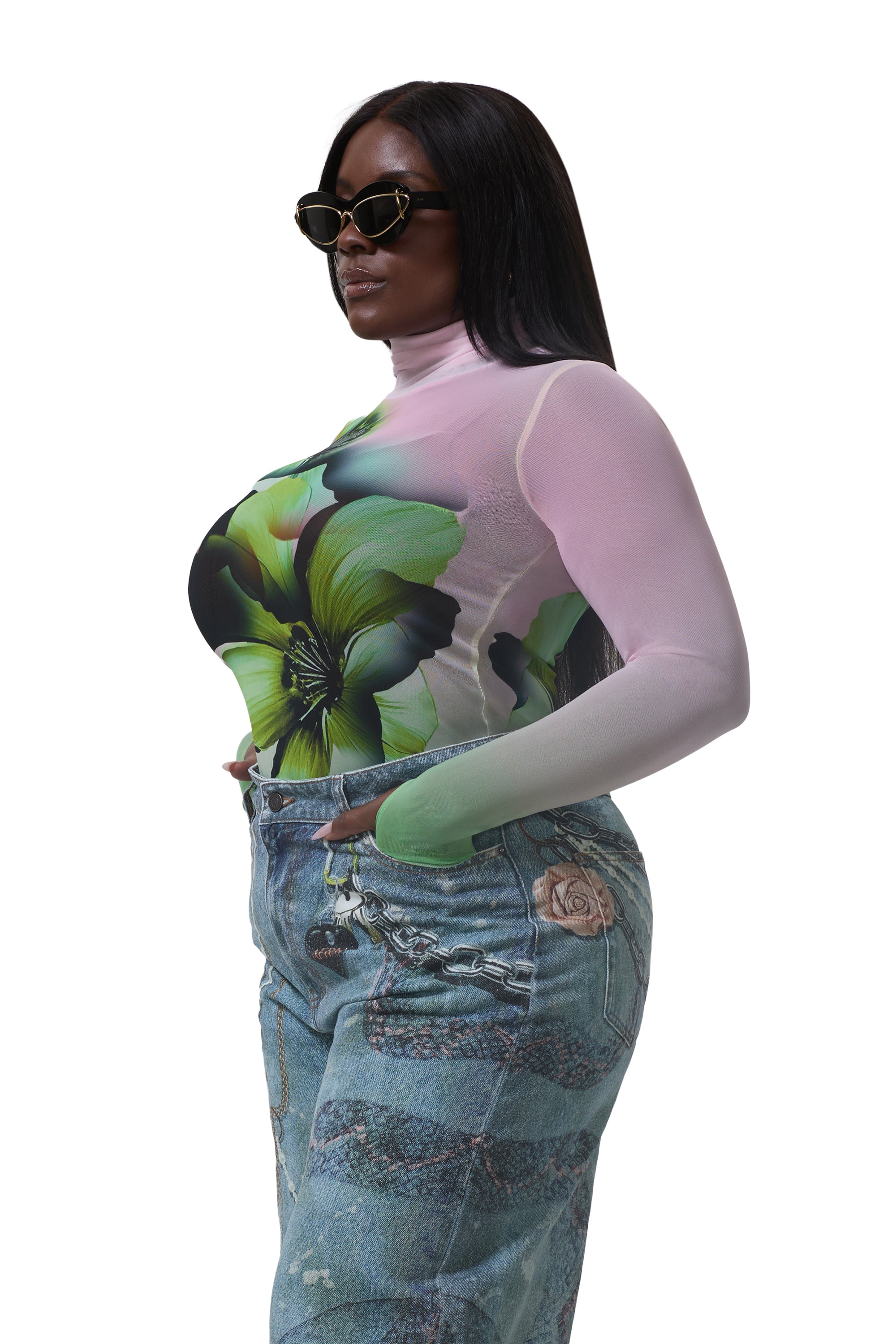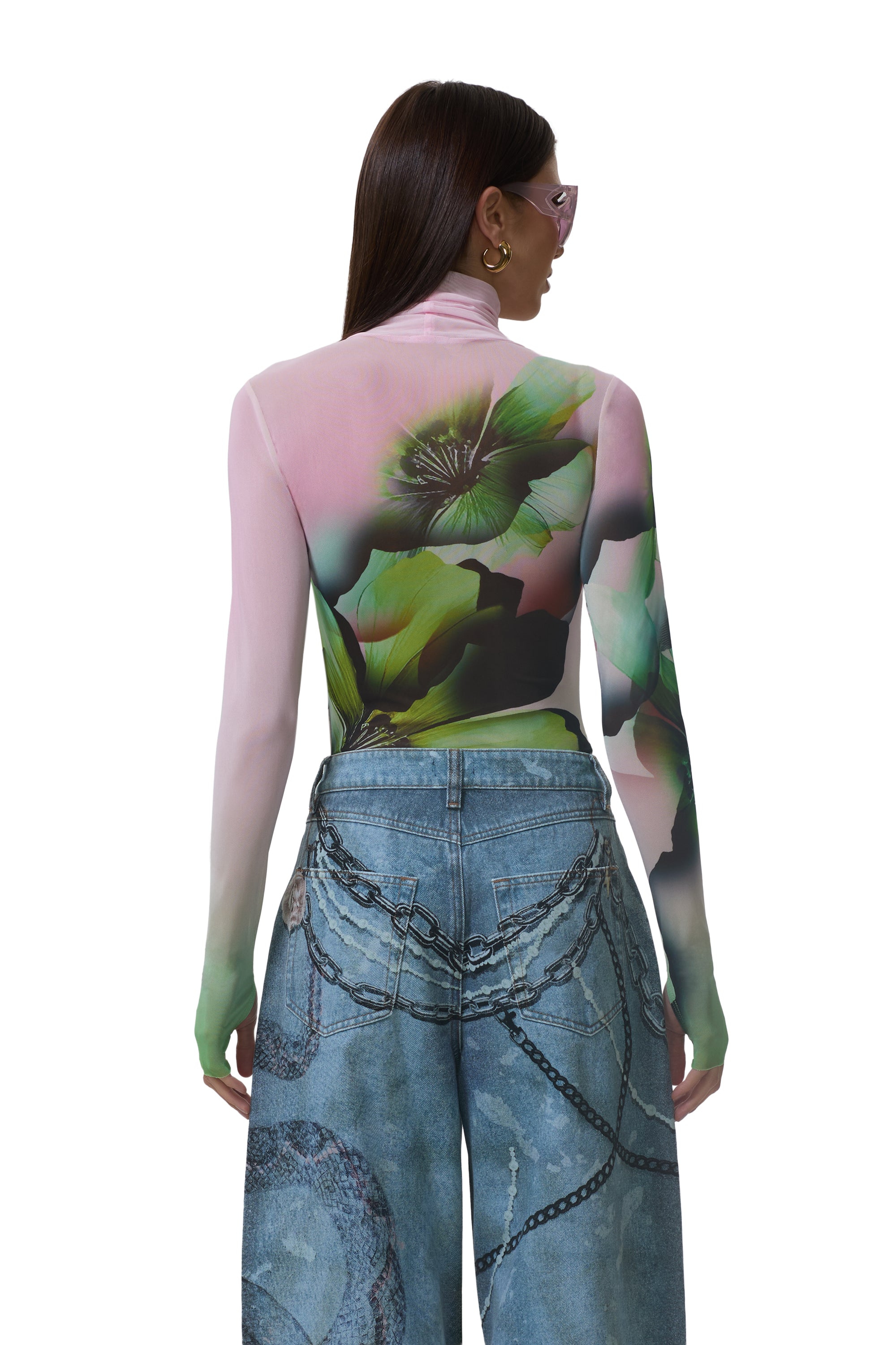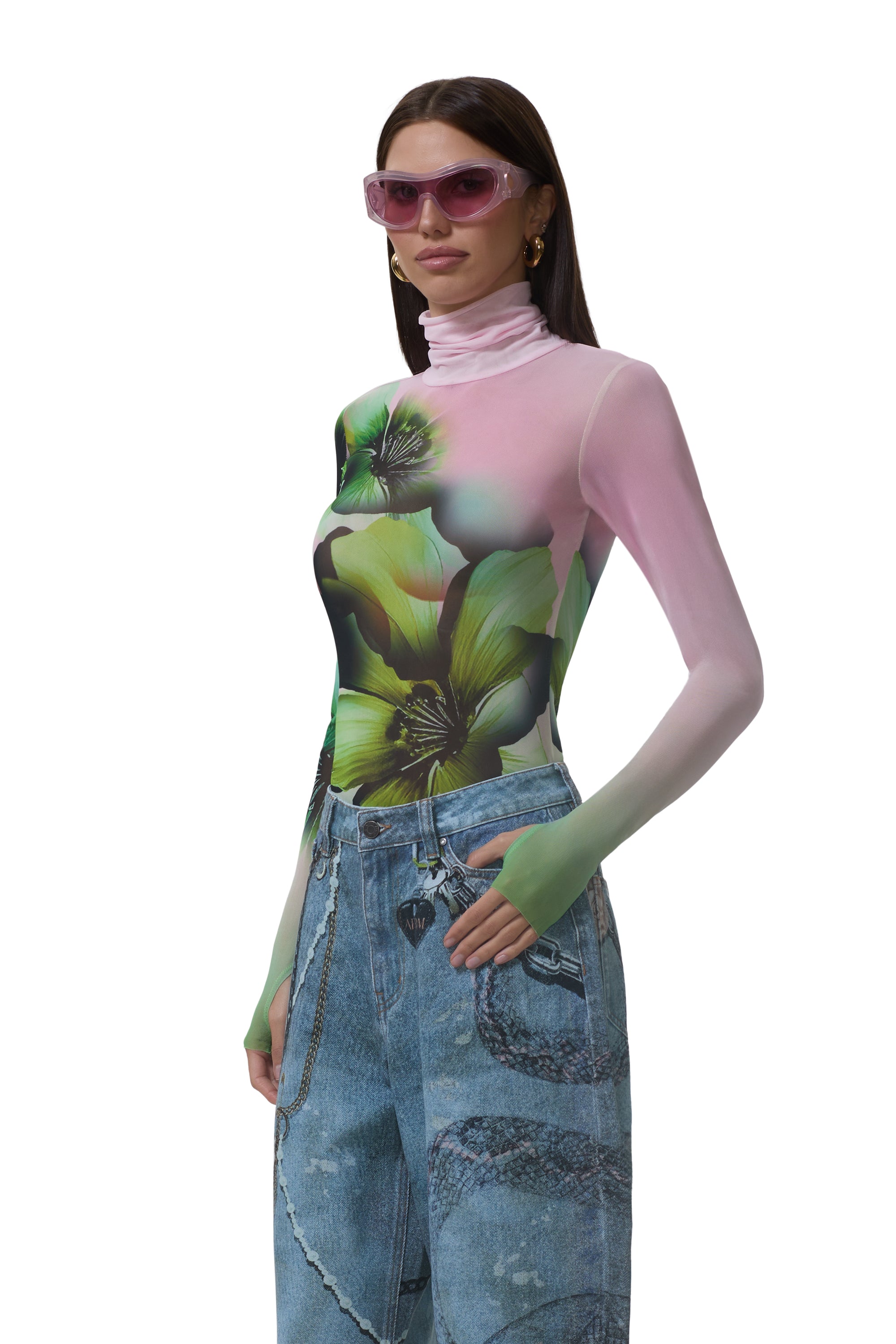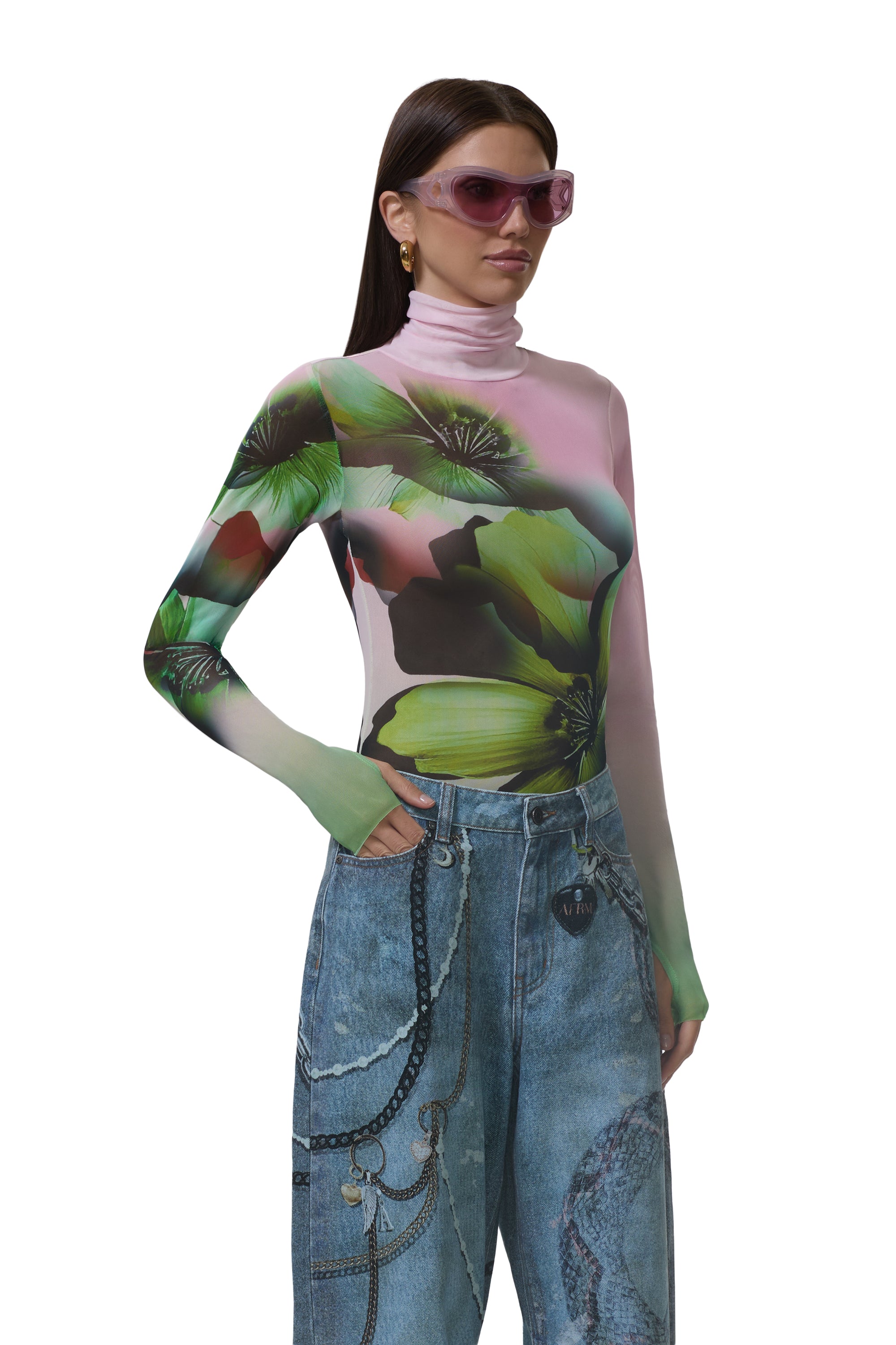 The Zadie top features a sheer mesh material and street-style thumbholes that lend an edgy update to off-duty style. She comes in Ombre Fleur.