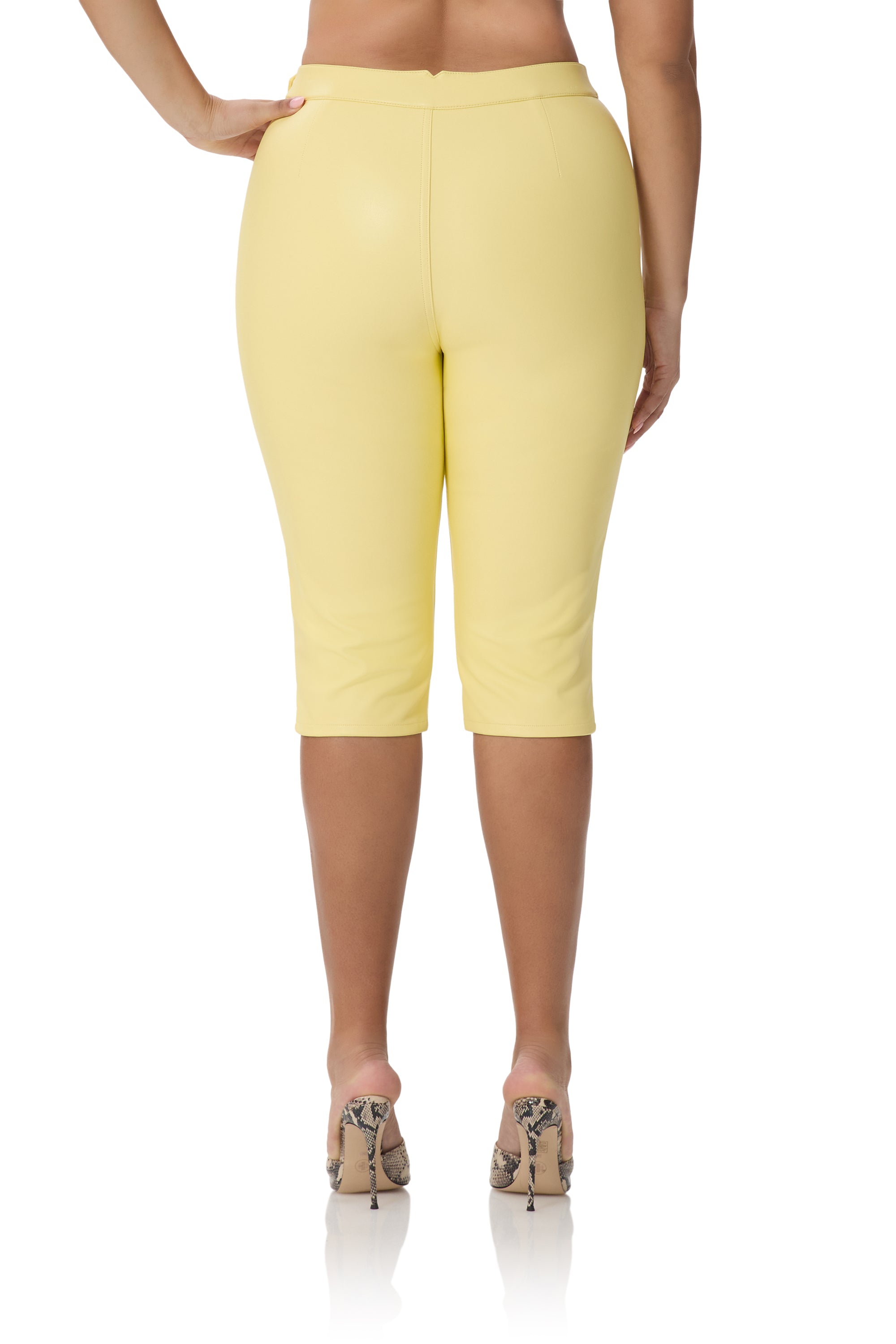 Meet the Calla Capri, where sleek meets sunlit sophistication. Designed in high gloss faux leather, this silhouette features a high rise waistband that sculpts and supports in all the right places. The cropped capri length hits just below the knee for a modern, warm-weather edge and a pull-on design keep the look effortlessly polished. Designed to move with you and stand out with ease, Calla delivers statement style from day to night.