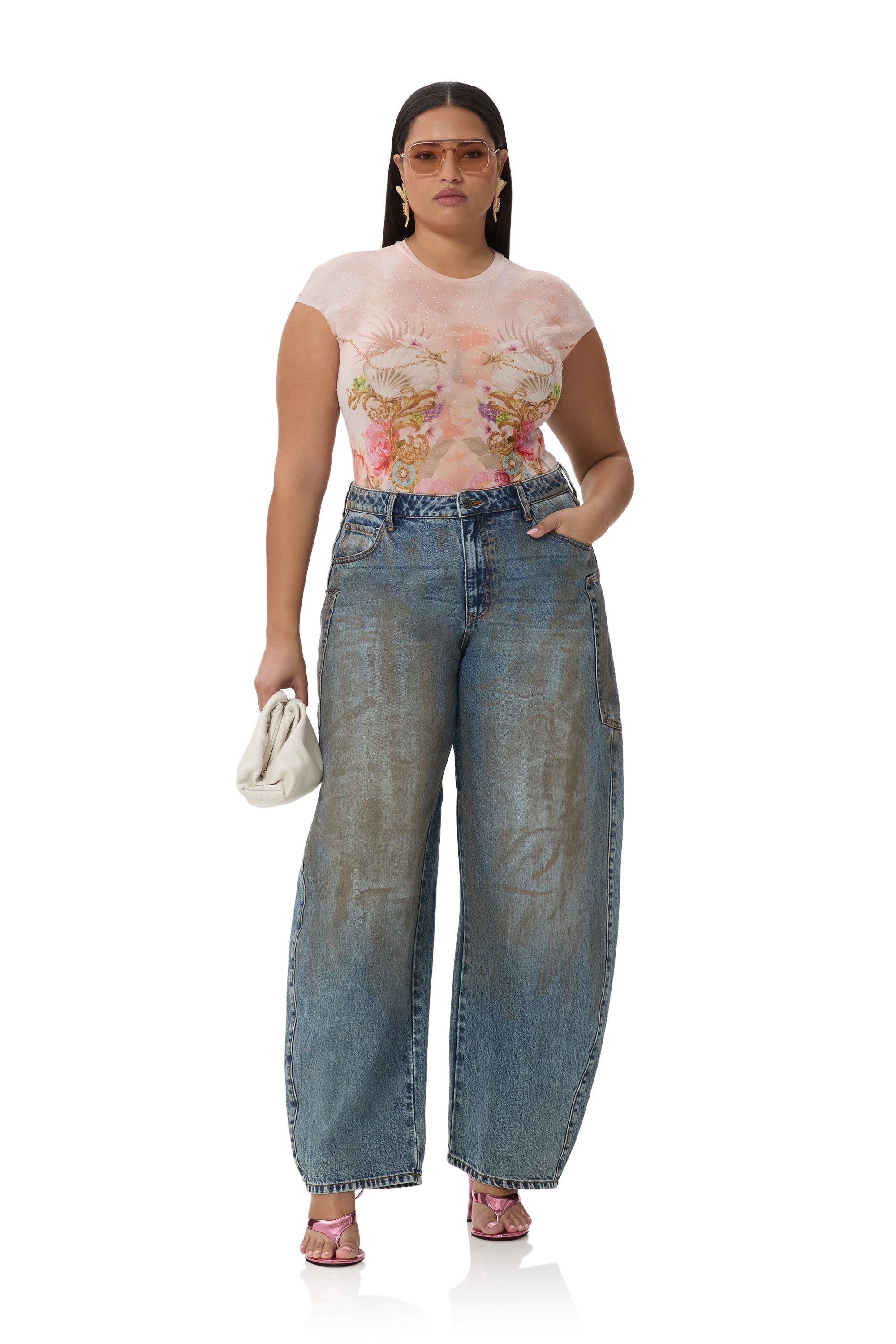 Diana is 5'9 and wears a size Small. Hayley is 5'10 and wears a size 1X. Measurements below are for a size Small: