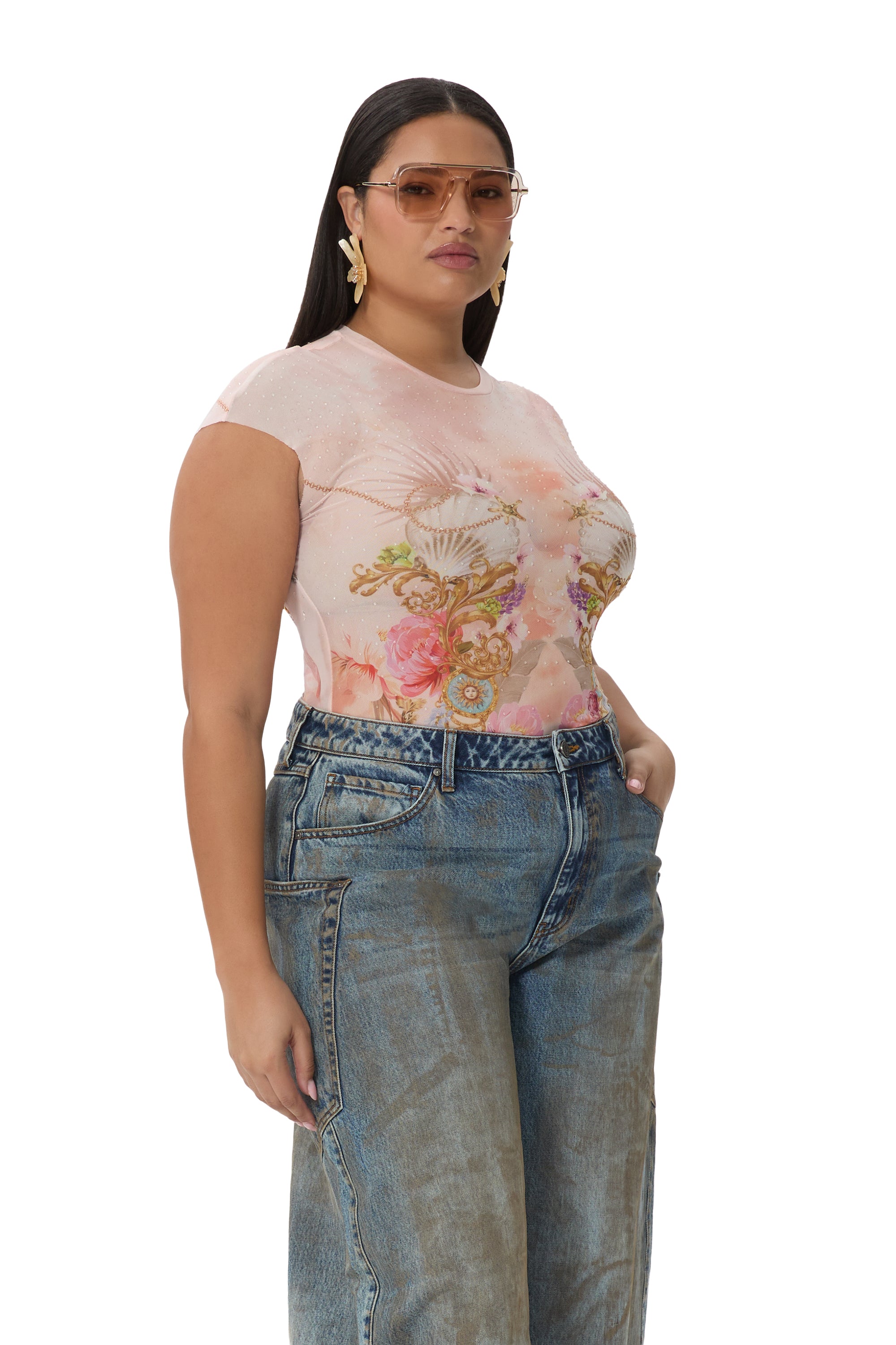 Introducing the best selling power mesh essential tee, reimagined in our newest dew drop mesh fabrication. The Nina is fit to flatter and easily becomes a wardrobe necessity. Slip into this must need style and embrace instant confidence.