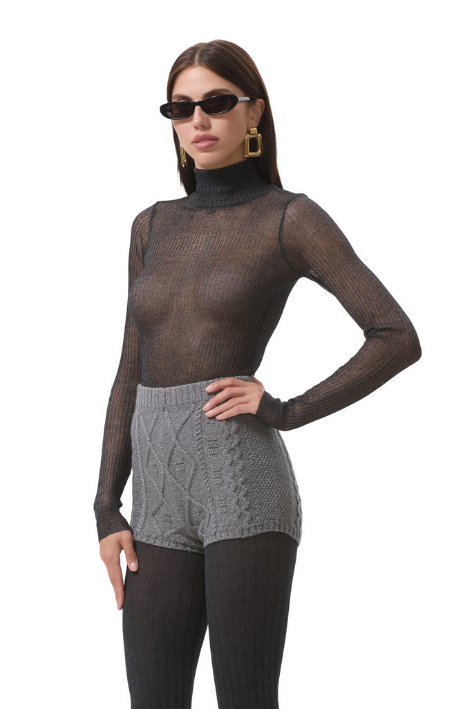 Meet the Bristol Top, our latest take on our iconic Zadie, now reimagined in our newest shimmering sweater rib. Featuring a classic mockneck and a semi sheer sparkly finish, Bristol is the ultimate statement top for your next night out. She comes in Noir.