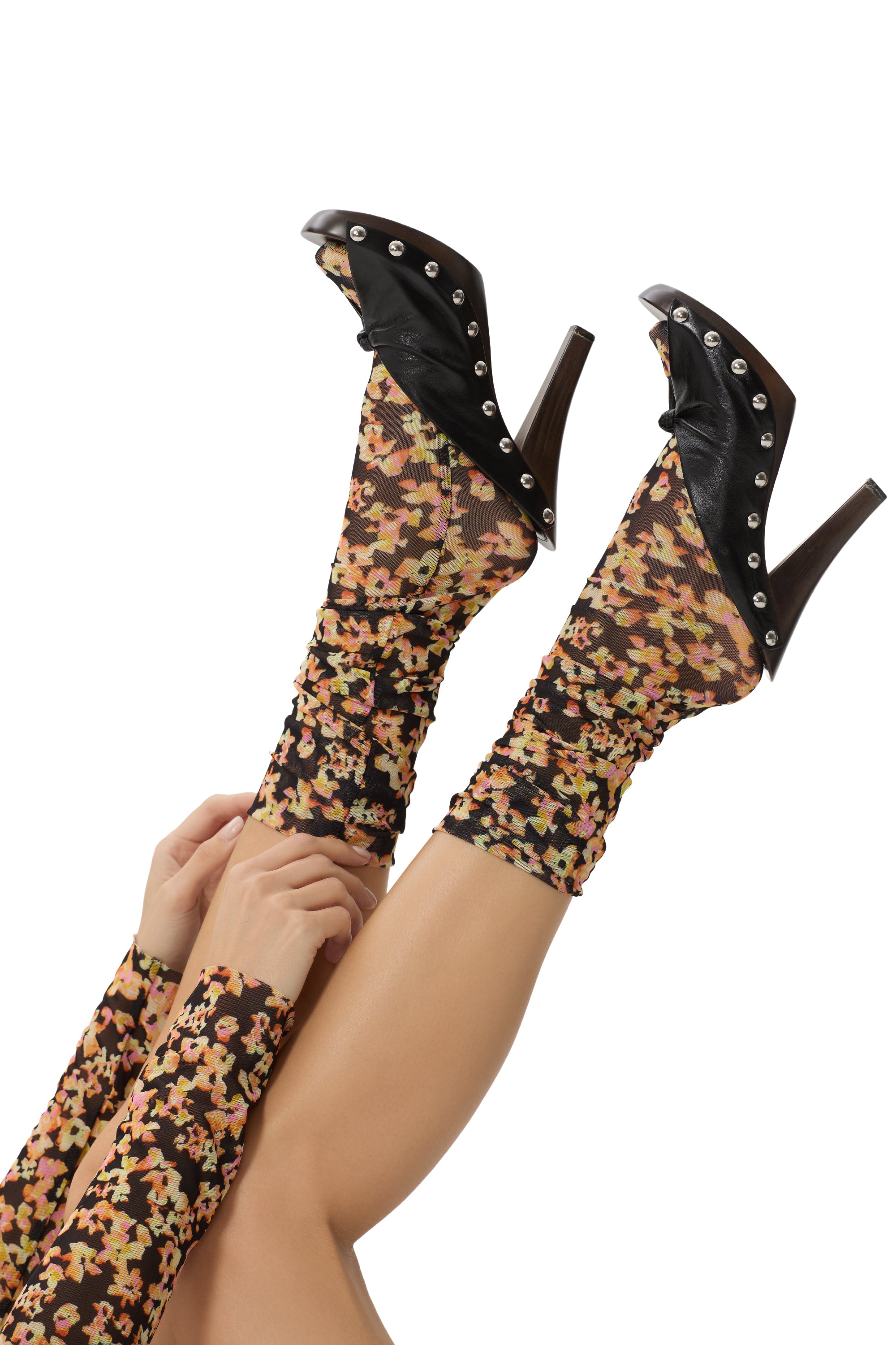 Mesh mid calf socks meant to compliment your off-duty style. They come in Bright Bloom.