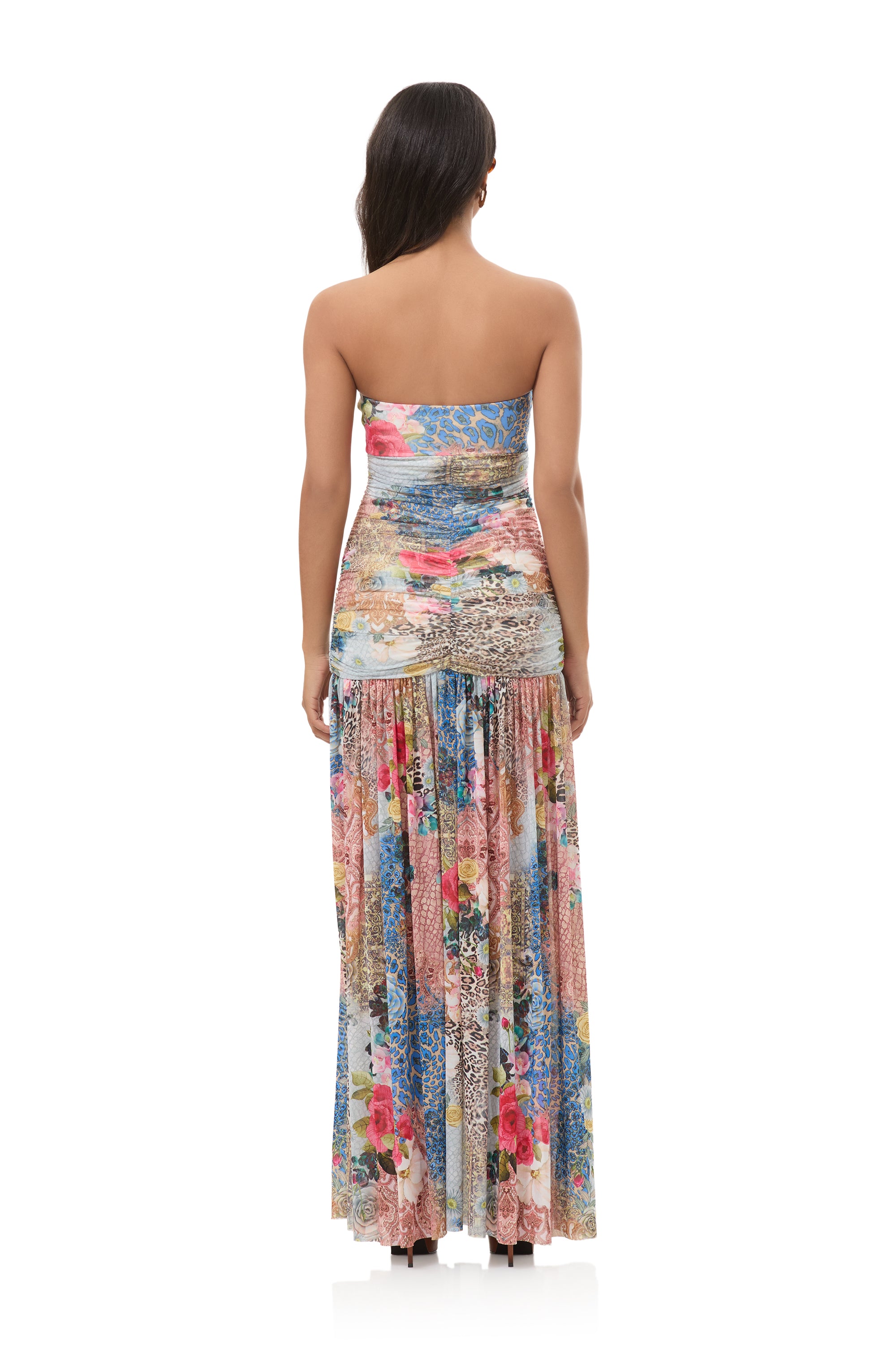 Slip into strapless with Denise, the must have style of the season. Featuring a sleek tube silhouette with a dropped waist detail, romantic sheer skirt, and boy short lining, this spring ready style is designed to flatter all season long.