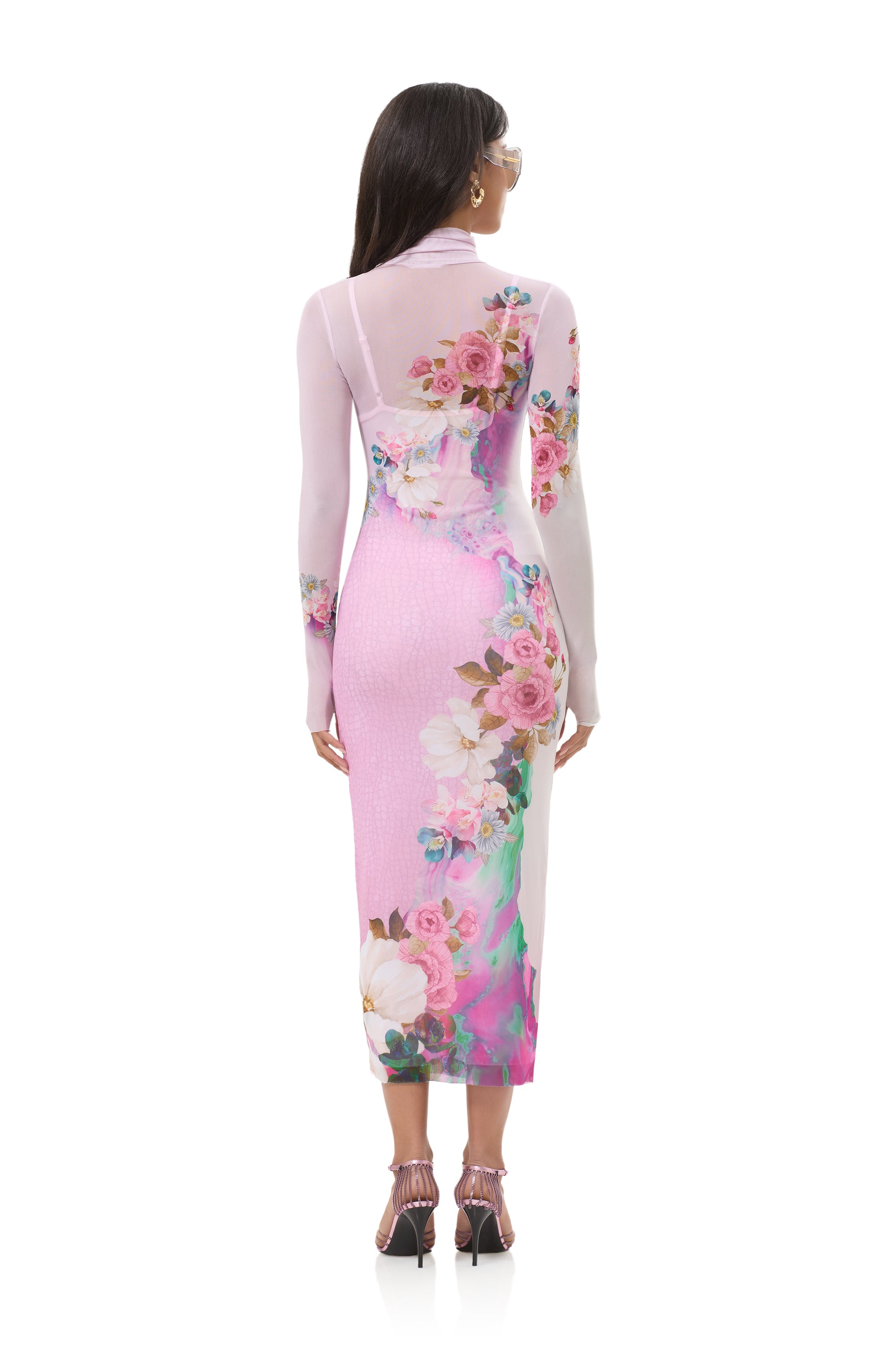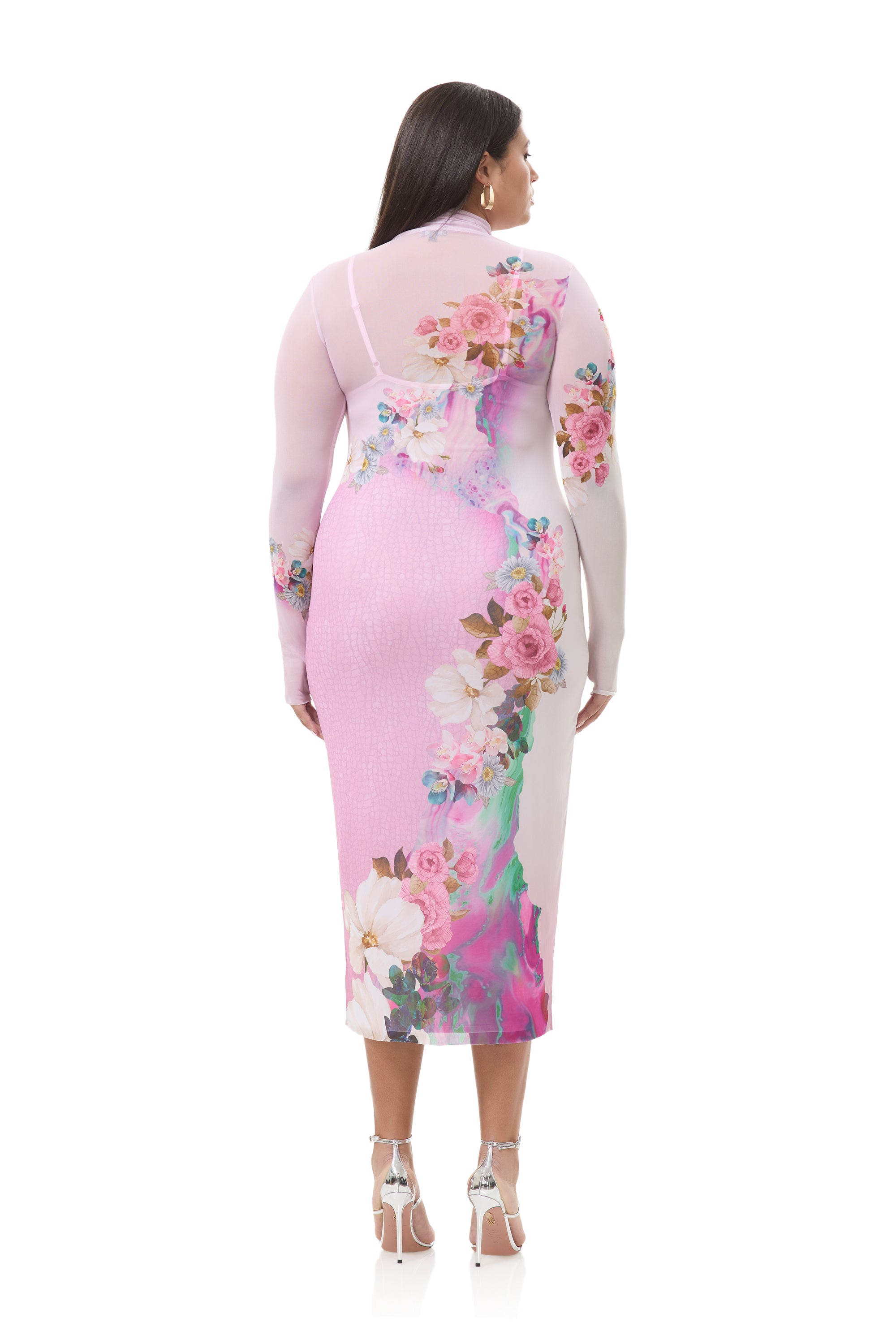 In a sheer power mesh in Marble Floral, the Shailene dress features a turtleneck and fitted midi silhouette. Her sleeve thumbholes add off-duty detail, and she comes in a pullover design that includes a removable slip.