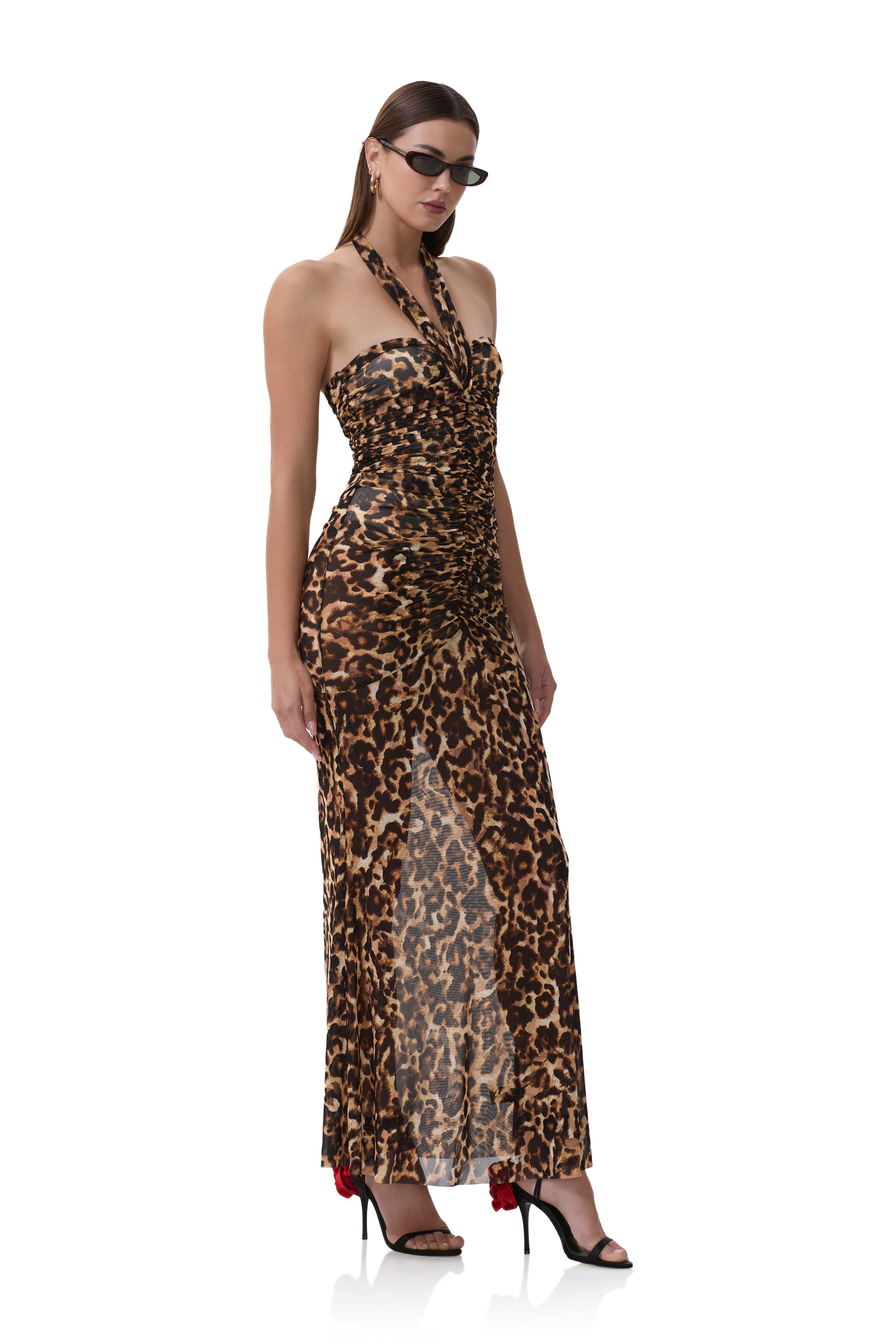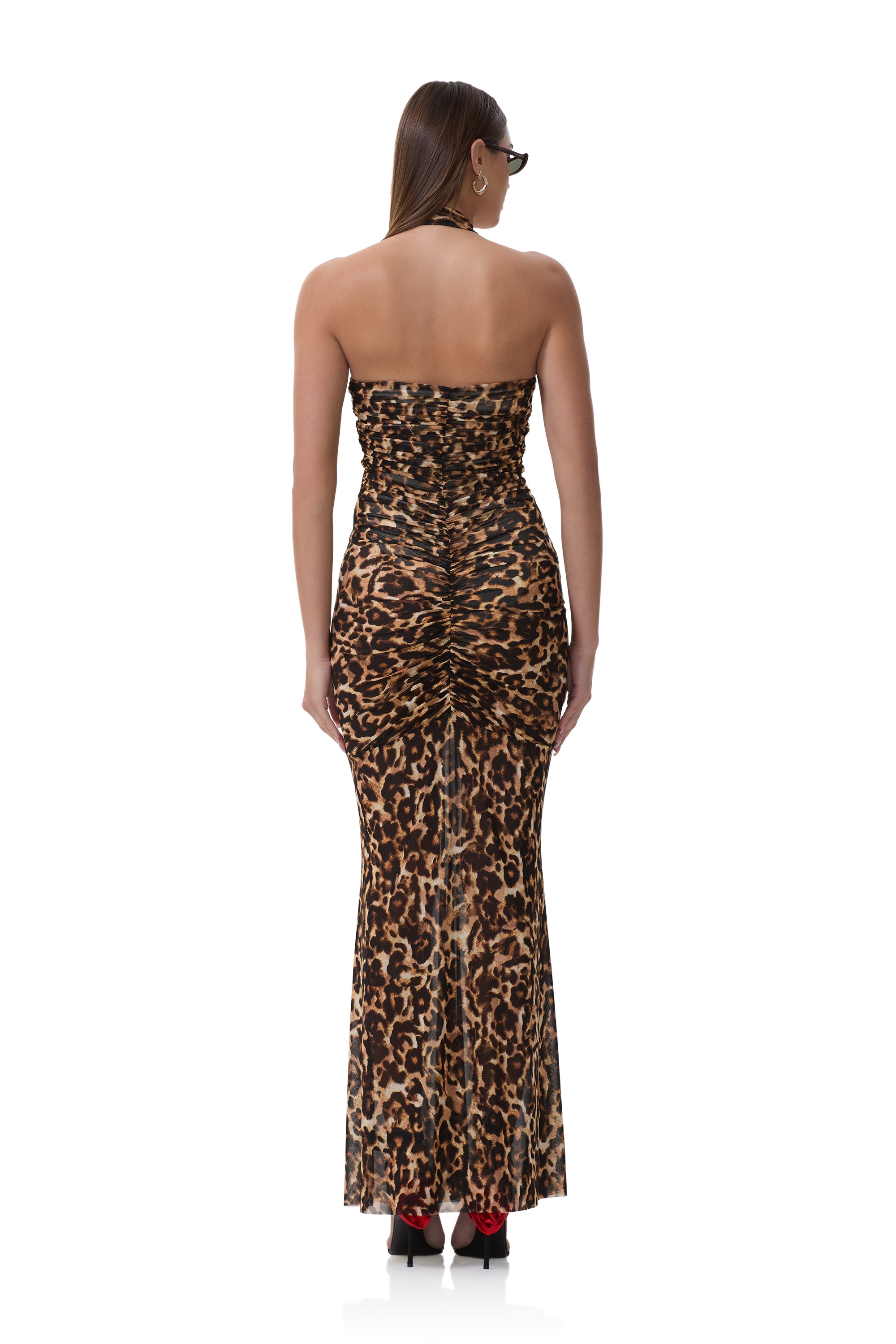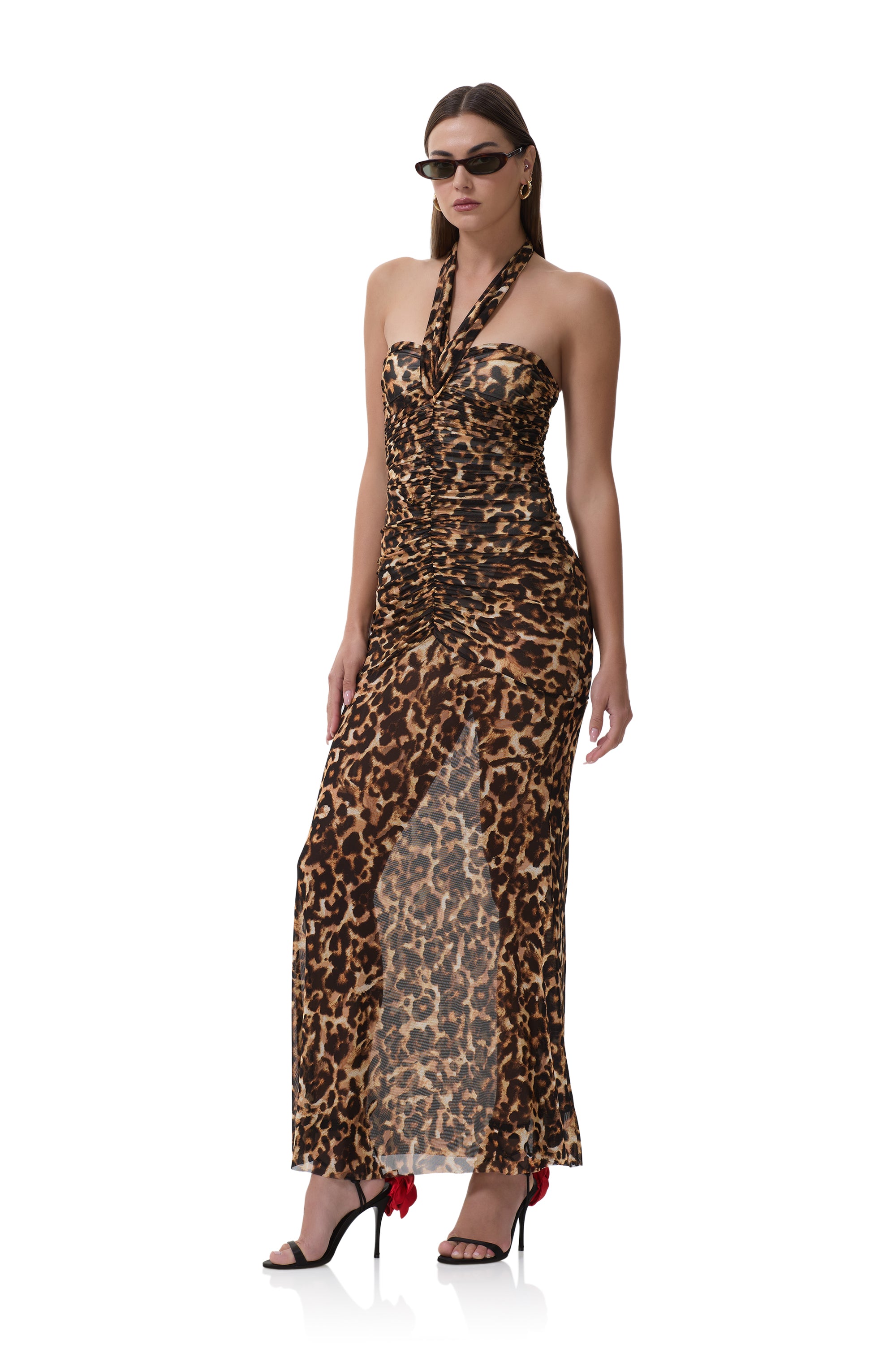 Time to step out in our boldest creation, the Sid Maxi Dress. Designed with a bold pullover halter neckline with a dramatic plunge and gathering front details, she's the perfect piece for your ultimate going out look. Available in Winter Animal.
