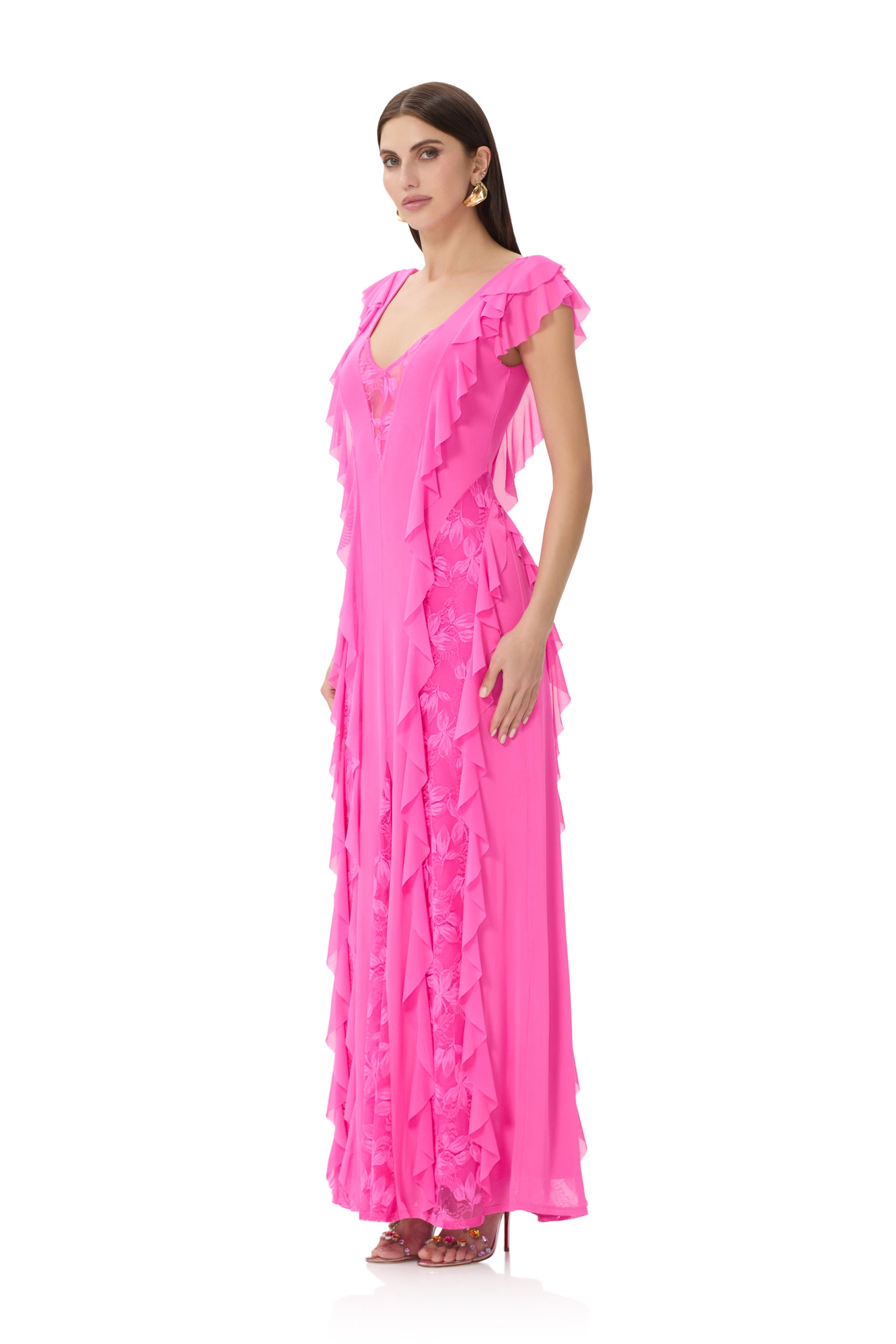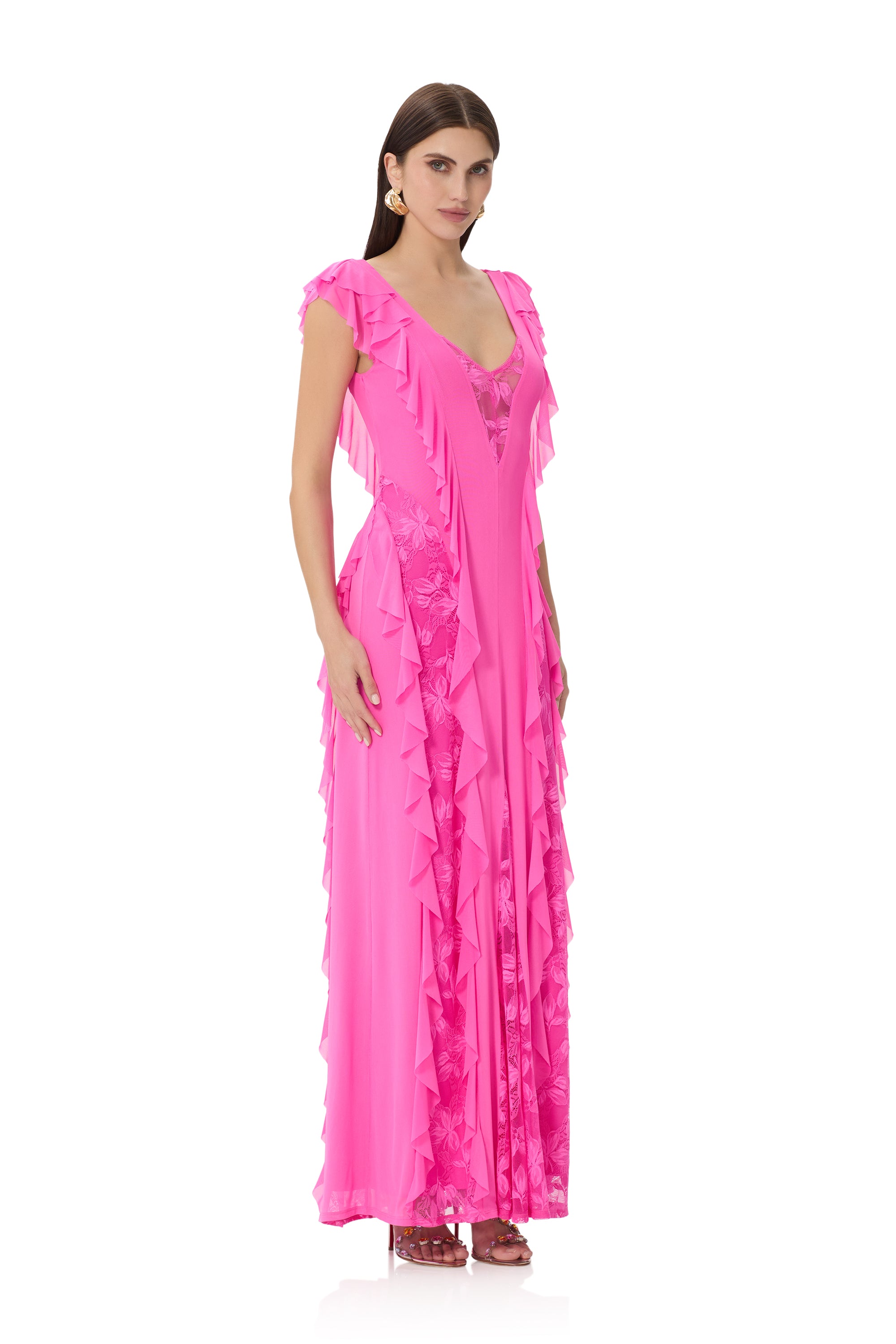 Flirty with a special touch of femininity, stay in the spotlight with the Trista Dress. It's the perfect dress this season with ruffle and lace details that add a touch of elegance to this maxi dress that will turn heads wherever you go.