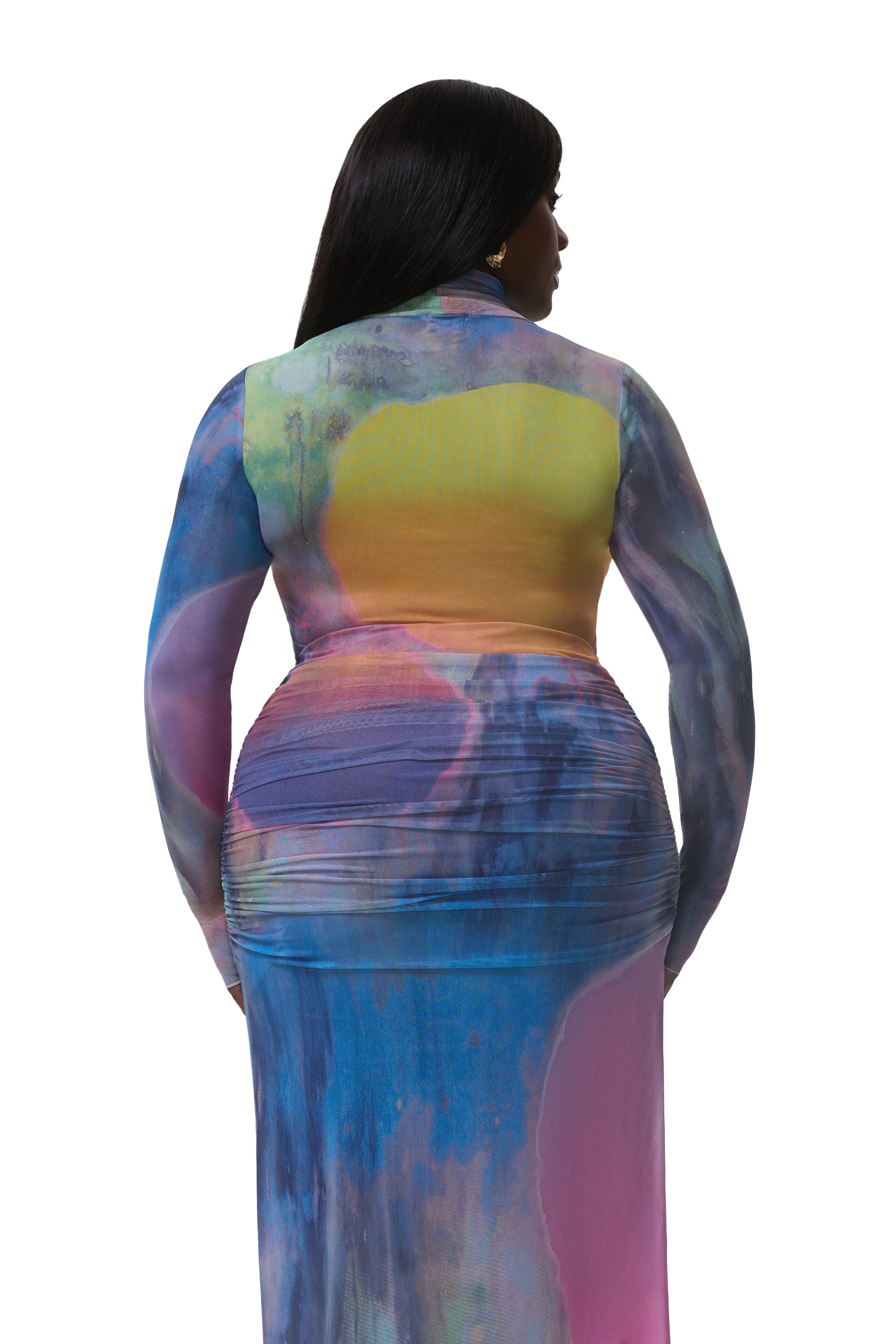 Diana is 5'9 and wears a size Small. Cameron is 5'8 and wears size 1X. Measurements below are for a size Small:
