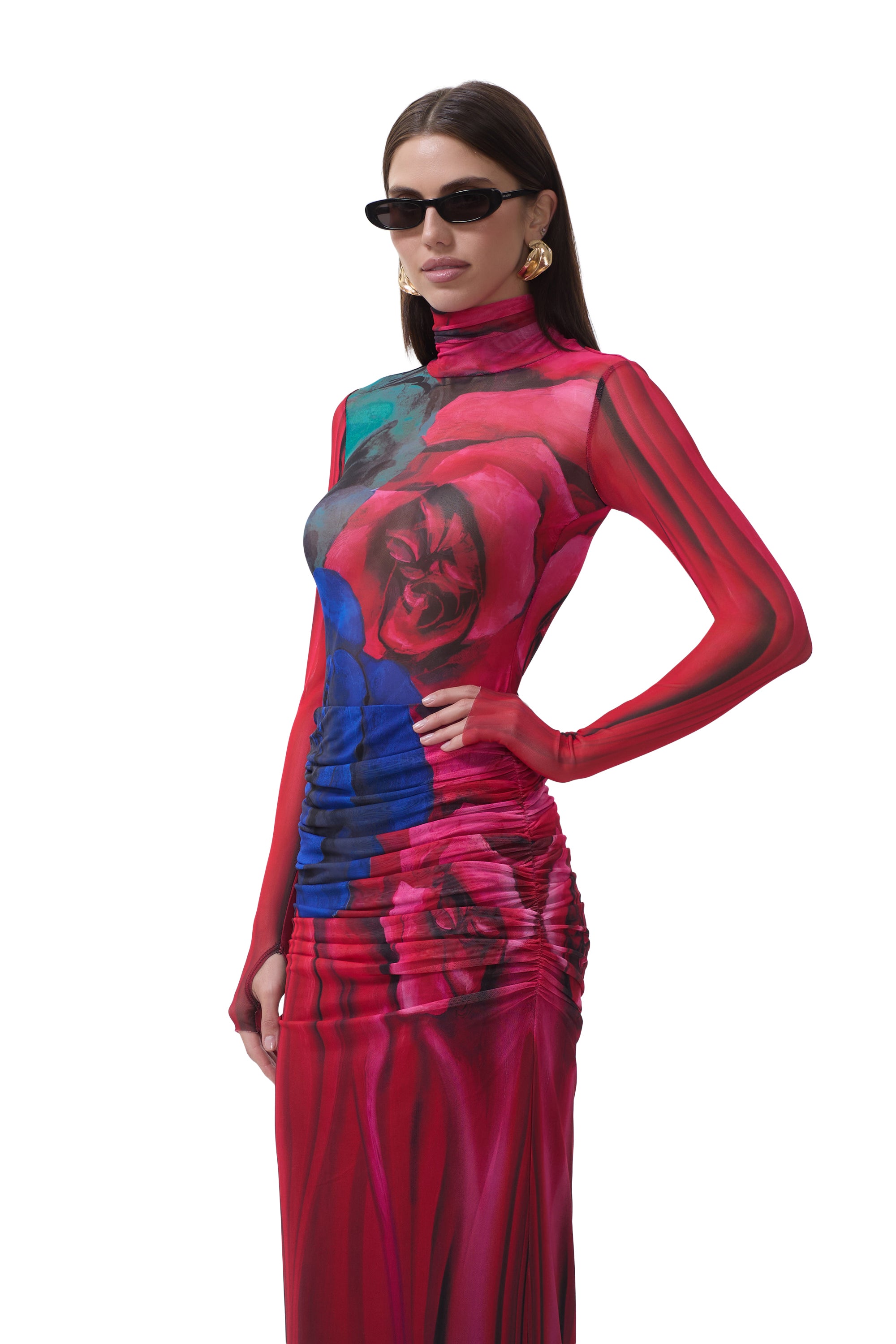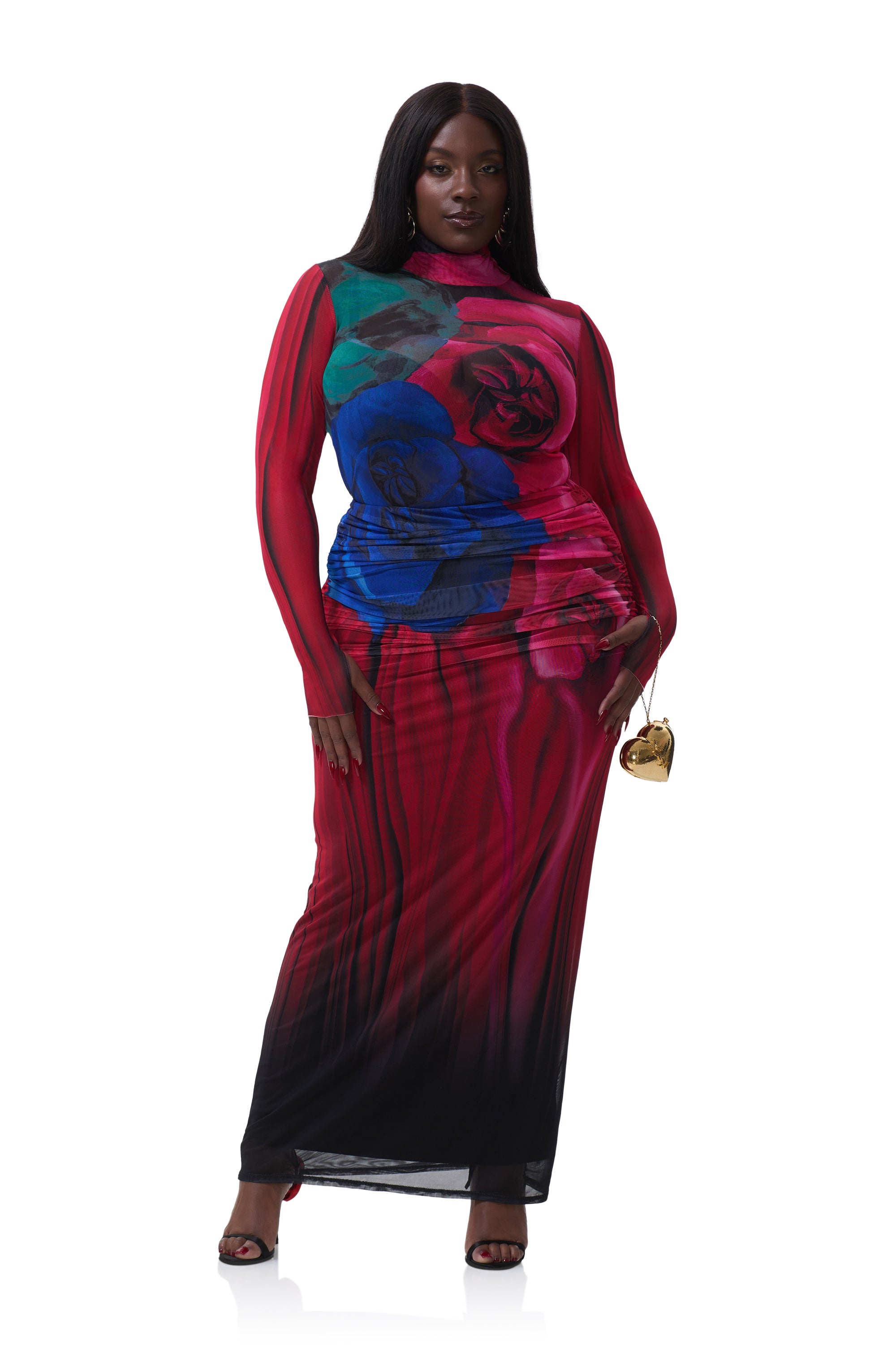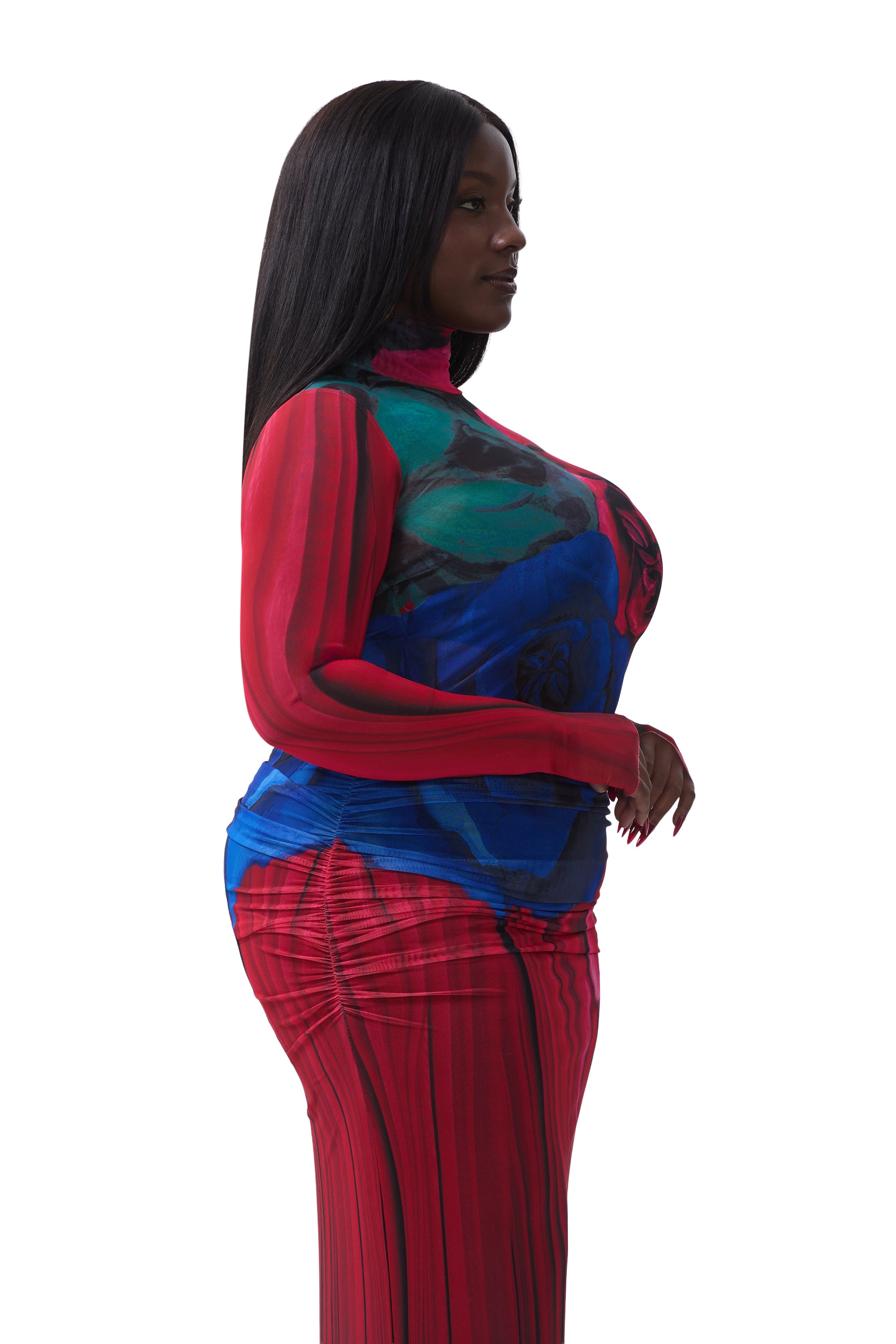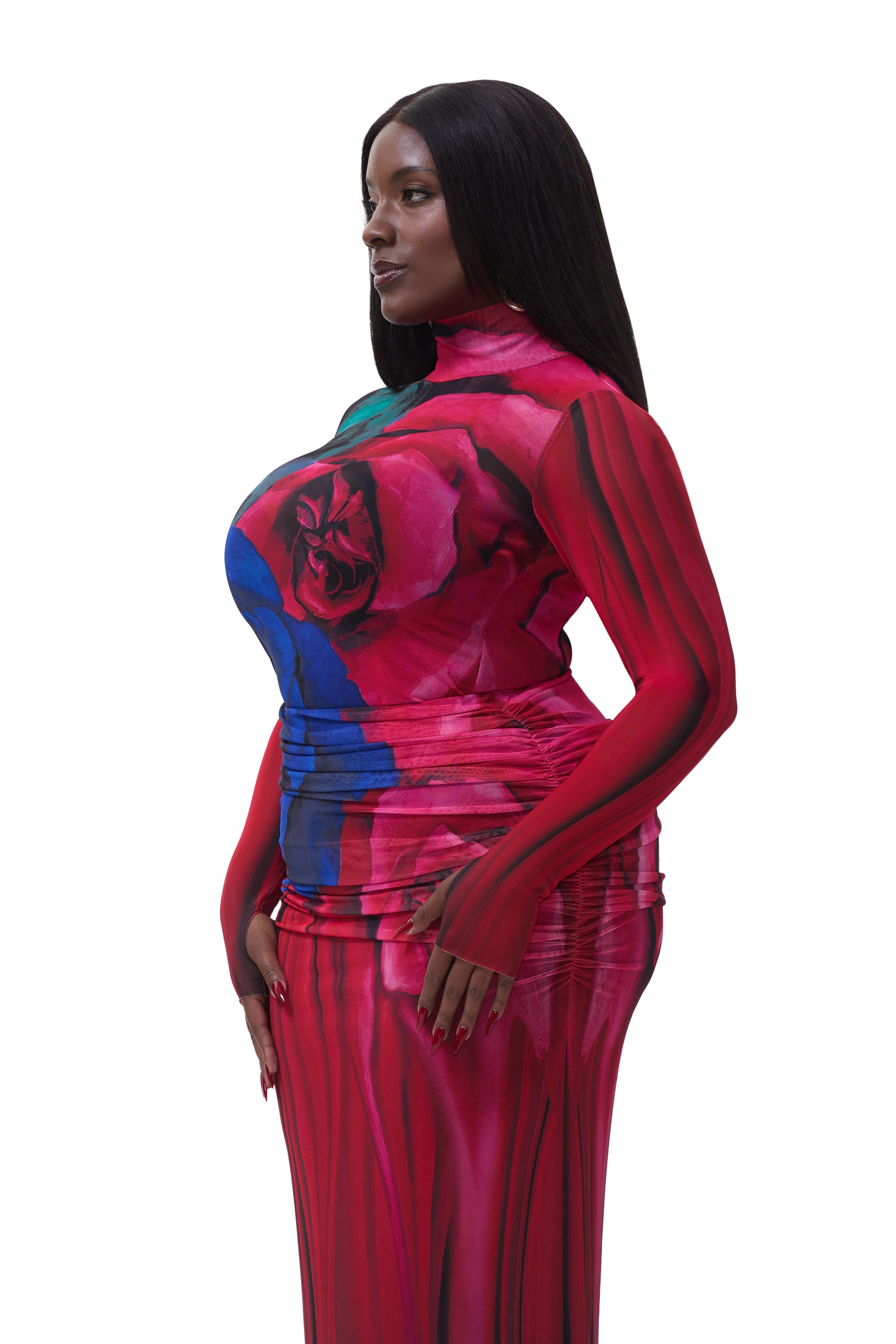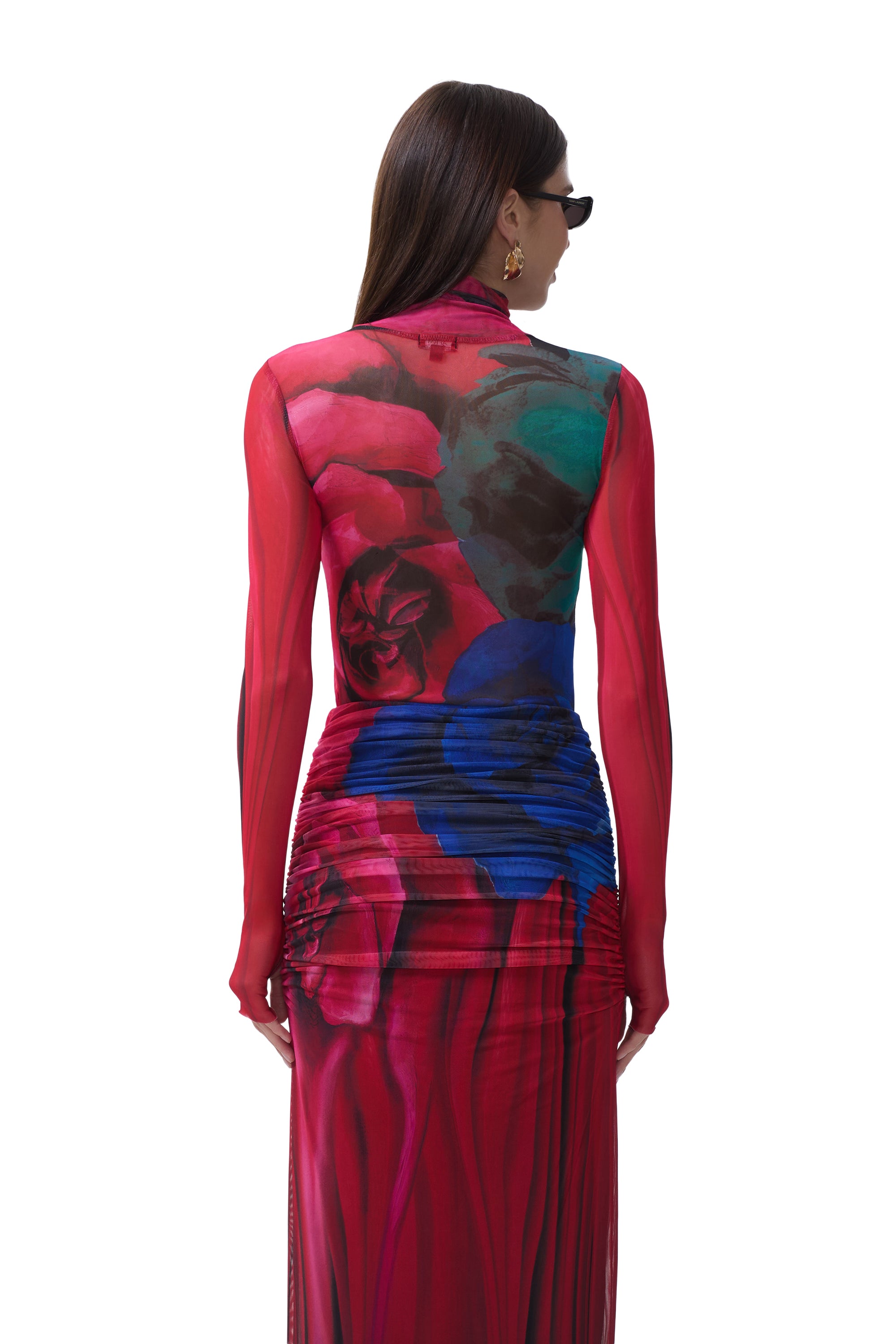 The Zadie top features a sheer mesh material and street-style thumbholes that lend an edgy update to off-duty style. She comes in Multi Blur Rose.